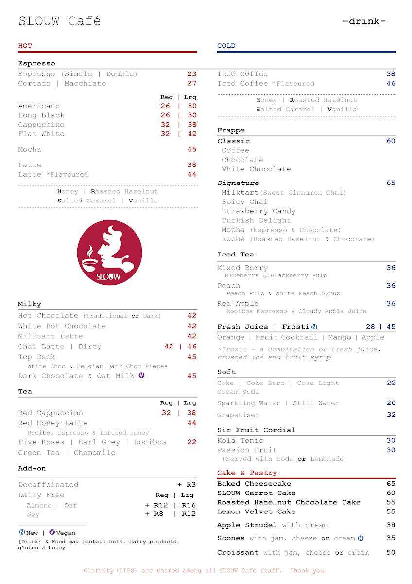Introducing SLOUW Cafe, a delightful gem nestled in Mooirivier Junction, Potchefstroom. Known for its inviting atmosphere and exquisite offerings, SLOUW delights patrons with a carefully curated menu that features a variety of beverages and delicious meals, including freshly made pizzas. Customers rave about the quality ingredients, warm service, and cleanliness of the space, making it a perfect spot for both quiet work sessions and leisurely coffee breaks. Each visit promises a cozy experience, highlighted by supportive staff and ambient music that enhances productivity. The cafe also showcases local art, adding a unique touch to its charm. Don’t miss their enticing Protein Bowl, a healthy treat that perfectly complements their renowned coffee. With positive reviews underscoring the essence of community and quality, SLOUW Cafe stands out as a must-visit in Potchefstroom. Whether you’re here for a quick bite or a long stay, SLOUW Cafe welcomes all with open arms.